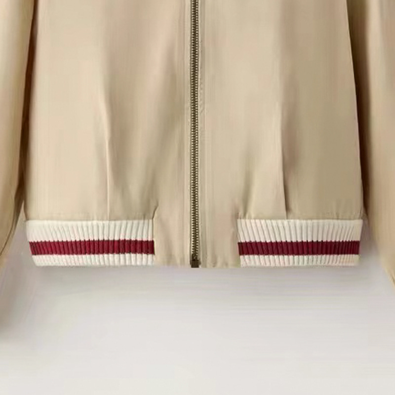 Dari segi fashion, pinggiran rajutan berusuk tebal berukuran 2x2 menambah efek visual unik pada jaket baseball dengan desainnya yang simpel namun bertekstur. Tepi rajutan ini tidak hanya berperan mengencangkan bagian ujung, manset, dan posisi jaket lainnya, tetapi juga sebagai bagian dari desain jaket secara keseluruhan, membentuk kontras yang tajam dengan elemen jaket lainnya, sehingga meningkatkan selera mode jaket.