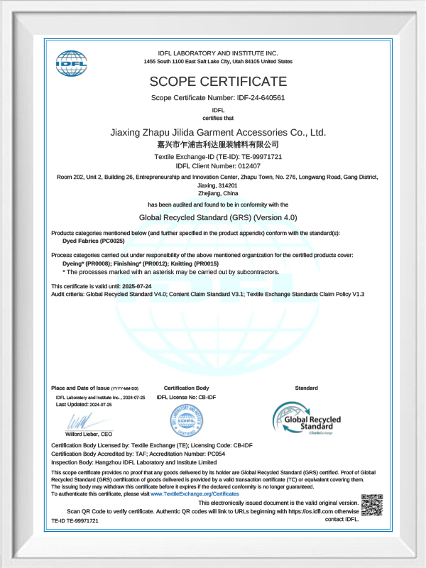 Jiaxing Zhapu Jilida Aksesoris Garmen Co, Ltd. is